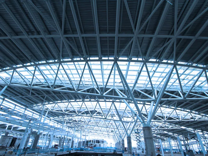 5. ছাদ এবং বাহ্যিক ক্ল্যাডিং একবার ইস্পাত ফ্রেম সম্পূর্ণ হলে, ছাদ ব্যবস্থা ইনস্টল করা হয়, সাধারণত উত্তাপযুক্ত ধাতব প্যানেল বা একক-প্লাই মেমব্রেন সামগ্রী ব্যবহার করে। বাহ্যিক দেয়াল, যদি নকশায় অন্তর্ভুক্ত করা হয়, মেটাল প্যানেল, ইট বা অন্যান্য ক্ল্যাডিং উপকরণ ব্যবহার করেও ইনস্টল করা হয়।