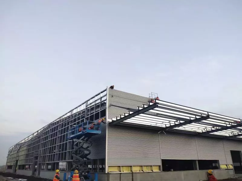 গুদামের পোর্টাল ফ্রেম ডিজাইনে স্টিল কলাম এবং রাফটারগুলির একটি সিরিজ রয়েছে যা একটি অনমনীয় এবং স্থিতিশীল কাঠামো গঠন করে। এই নকশাটি দুর্দান্ত লোড-ভারবহন ক্ষমতা সরবরাহ করে, এটি নিশ্চিত করে যে গুদাম নিরাপদে ভারী বোঝা সমর্থন করতে পারে এবং চরম আবহাওয়ার পরিস্থিতি সহ্য করতে পারে। ইস্পাত উপাদানগুলি সাধারণত প্রিফেব্রিকেটেড এবং সাইটে একত্রিত হয়, নির্মাণের সময় হ্রাস করে এবং চূড়ান্ত কাঠামোর মধ্যে নির্ভুলতা নিশ্চিত করে।
