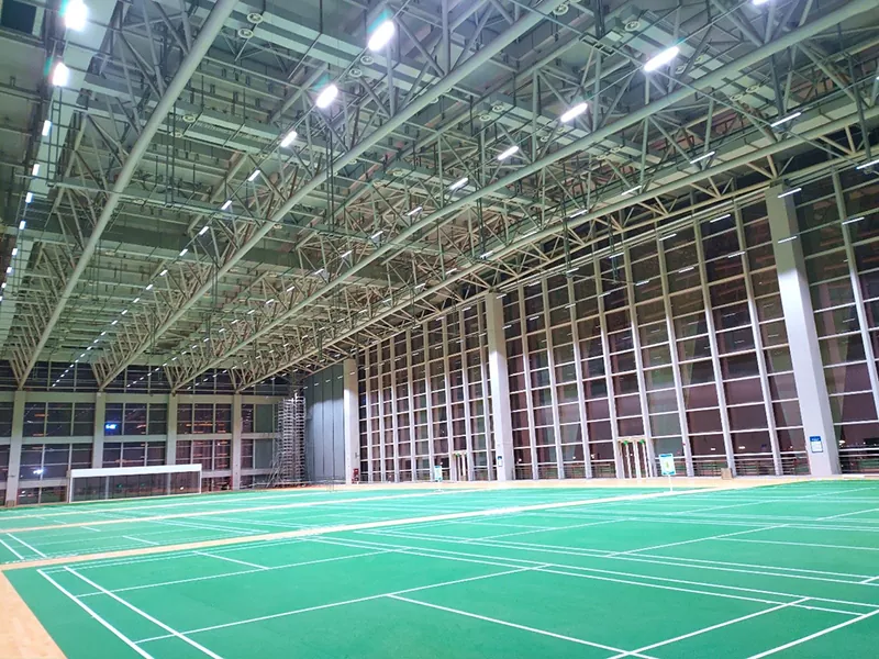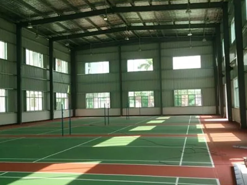 আধুনিক ক্রীড়া ভবনের উন্নয়নের অধীনে, ব্যাডমিন্টন ভেন্যু নির্মাণে ইস্পাত কাঠামো ব্যাডমিন্টন হল ধীরে ধীরে পছন্দের কাঠামোগত আকারে পরিণত হয়েছে। ইস্পাত বিম এবং ইস্পাত কলামগুলির সমন্বয়ে গঠিত প্রধান ফ্রেমটি পেশাদার ক্রীড়া স্থানগুলির মান প্রদর্শন করে কাঠামোগত শক্তি, নান্দনিক প্রভাব এবং অর্থনৈতিক কর্মক্ষমতা বিবেচনা করে। একটি বদ্ধ স্থান হিসাবে, একটি ব্যাডমিন্টন হলের একটি ভাল বায়ুচলাচল ব্যবস্থা এবং তাপ নিরোধক প্রভাব থাকা প্রয়োজন। একটি ইস্পাত-গঠিত ব্যাডমিন্টন হল আরও পরিবেশ বান্ধব এবং তাপ নিরোধক প্রাচীর সামগ্রী ব্যবহার করতে পারে এবং বায়ুচলাচল ব্যবস্থার জন্য বিদ্যুৎ উৎপাদনের জন্য ছাদে সৌর প্যানেল স্থাপন করা যেতে পারে।